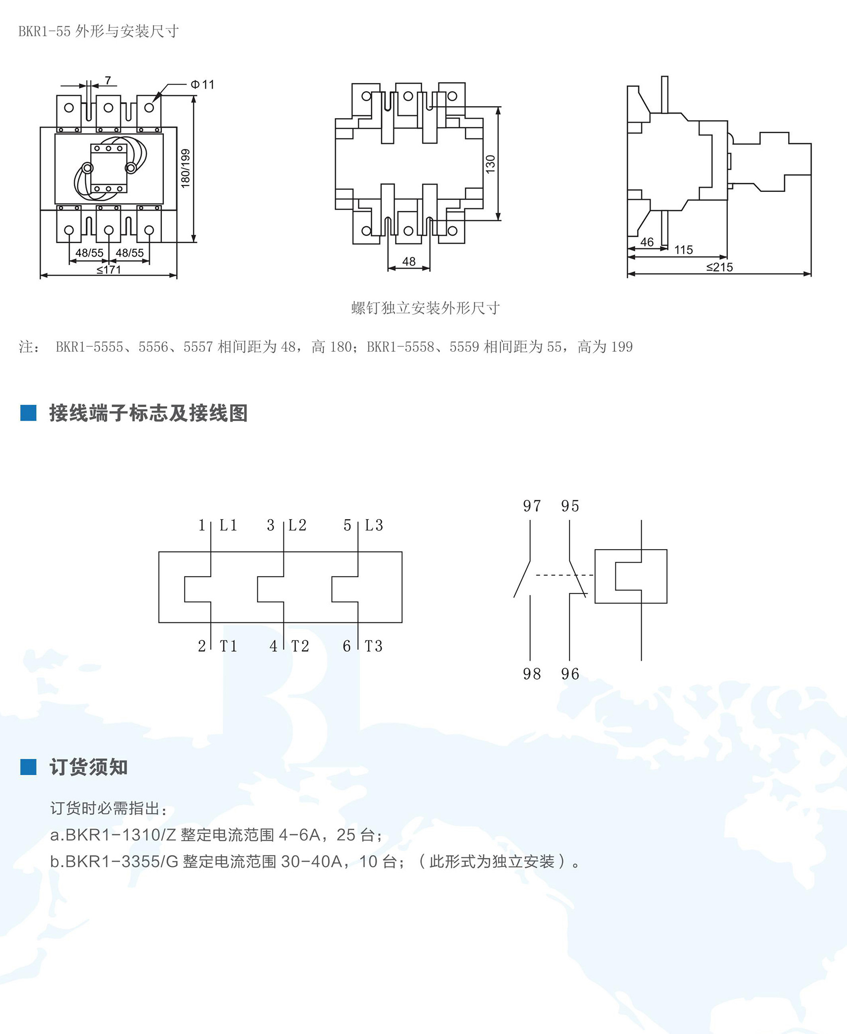 BKR1系列热过载继电器,在交流50Hz(60Hz)、额定电压至690V、电流0.1A至630A的电路中,作三相交流电动机的过载和断相保护之用。热过载继电器具有温度补偿、动作指示、自动和手动复位、停止等功能,性能稳定可靠。产品符合IEC 60947-4、GB/T 14048.4、GB/T 14048.5标准。