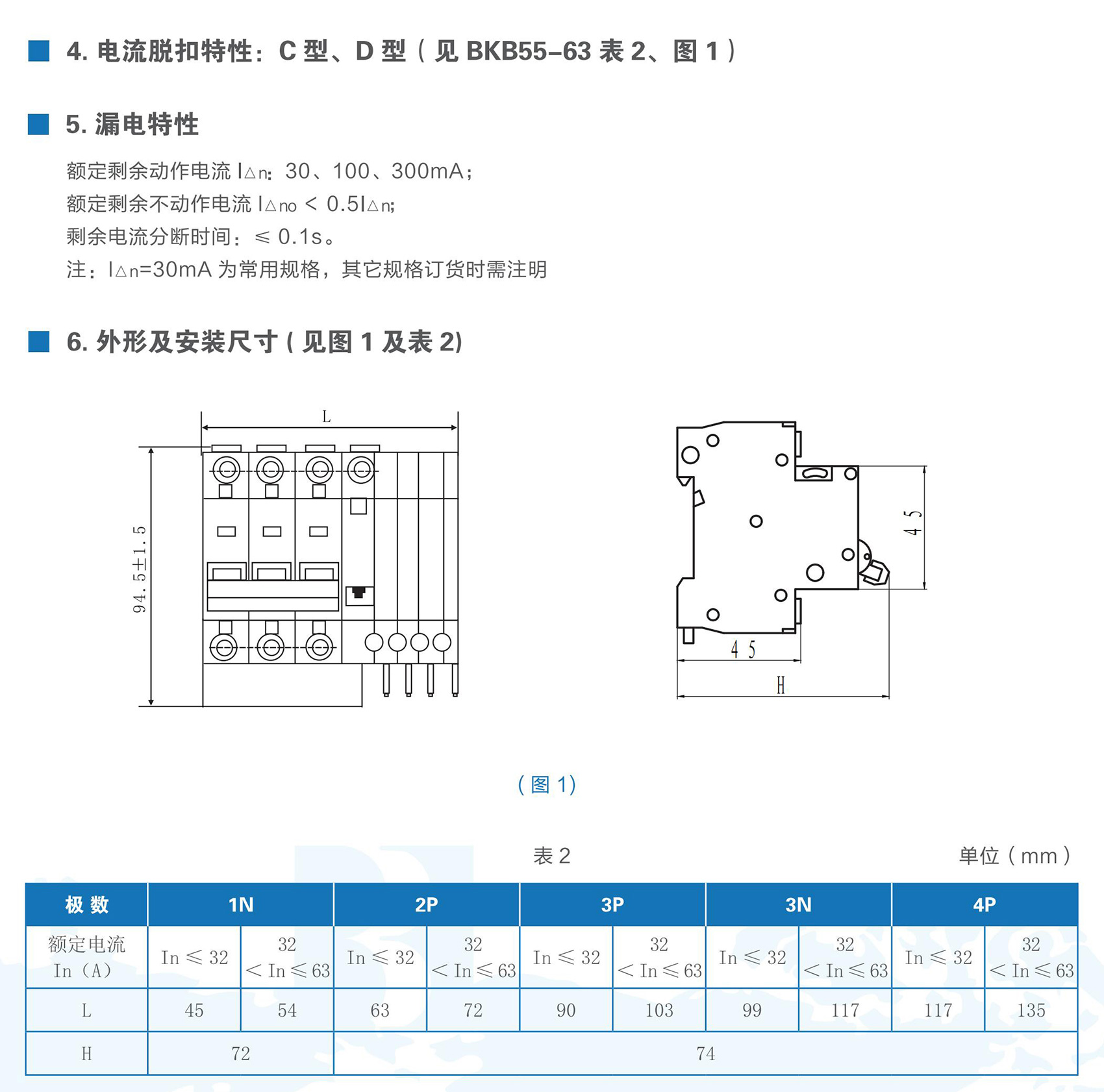 BKB55L-63ZB系列自诊断小型漏电断路器适用于交流50/60Hz,额定电压至230V,额定电流至63A的线路中,作为人身触电和设备漏电保护之用;剩余电流动作功能自诊断、失效报警,当产品漏电保护功能出现异常时会通过报警模块提醒用户;并可用于线路和电气设备的过载及短路保护。本产品符合GB/T 16917.1、IEC 61009-1标准。